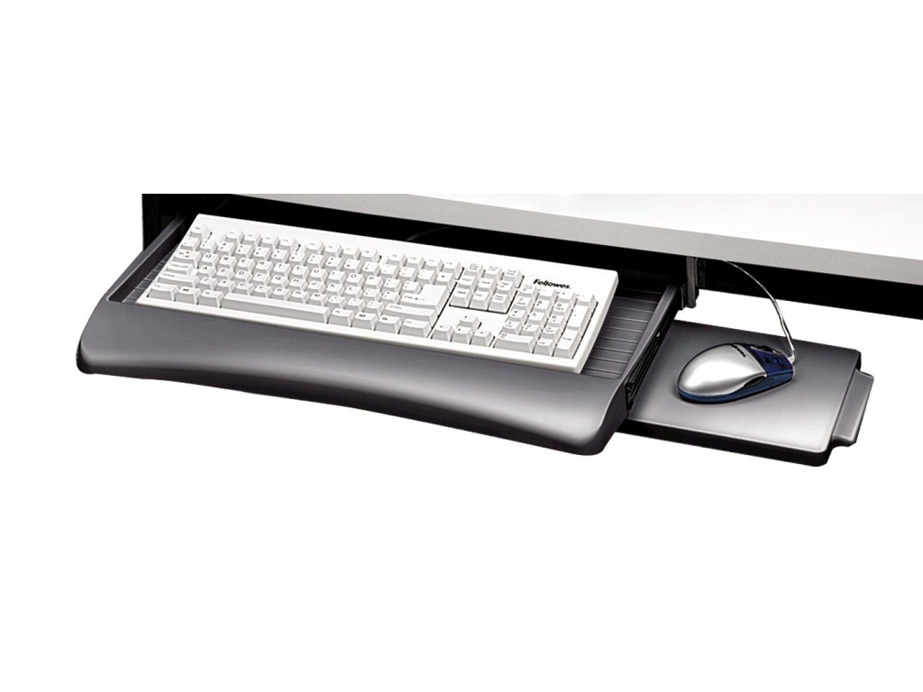 Používáním držáku klávesnice a myši Fellowes předcházíte bolesti zápěstí. Instalace pod pracovní desku psacího nebo obyčejného stolu umožňuje získat dodatečný využitelný prostor. Vhodné do kanceláře i domácnosti. Usnadňuje organizaci věcí na pracovním stole.• nastavitelná výška – 3 možné polohy