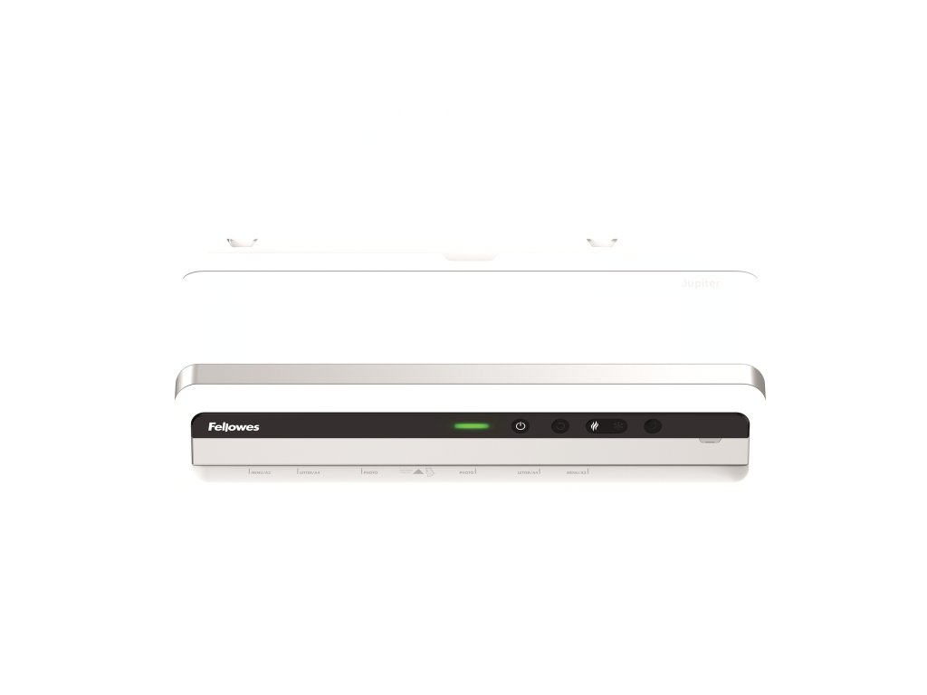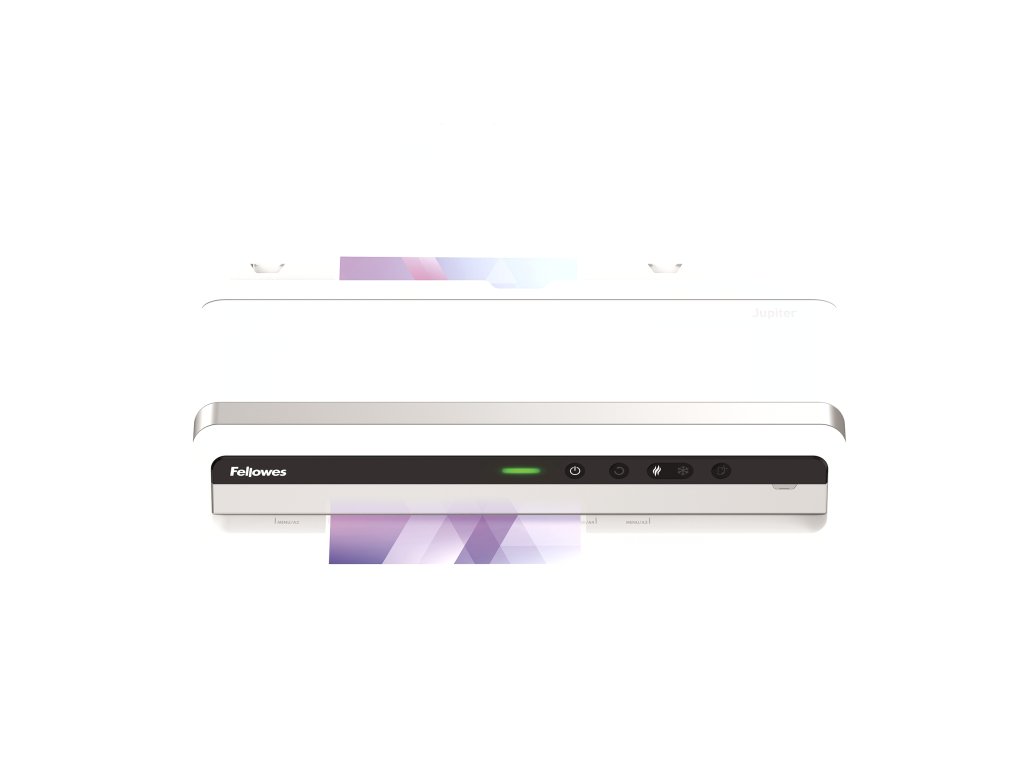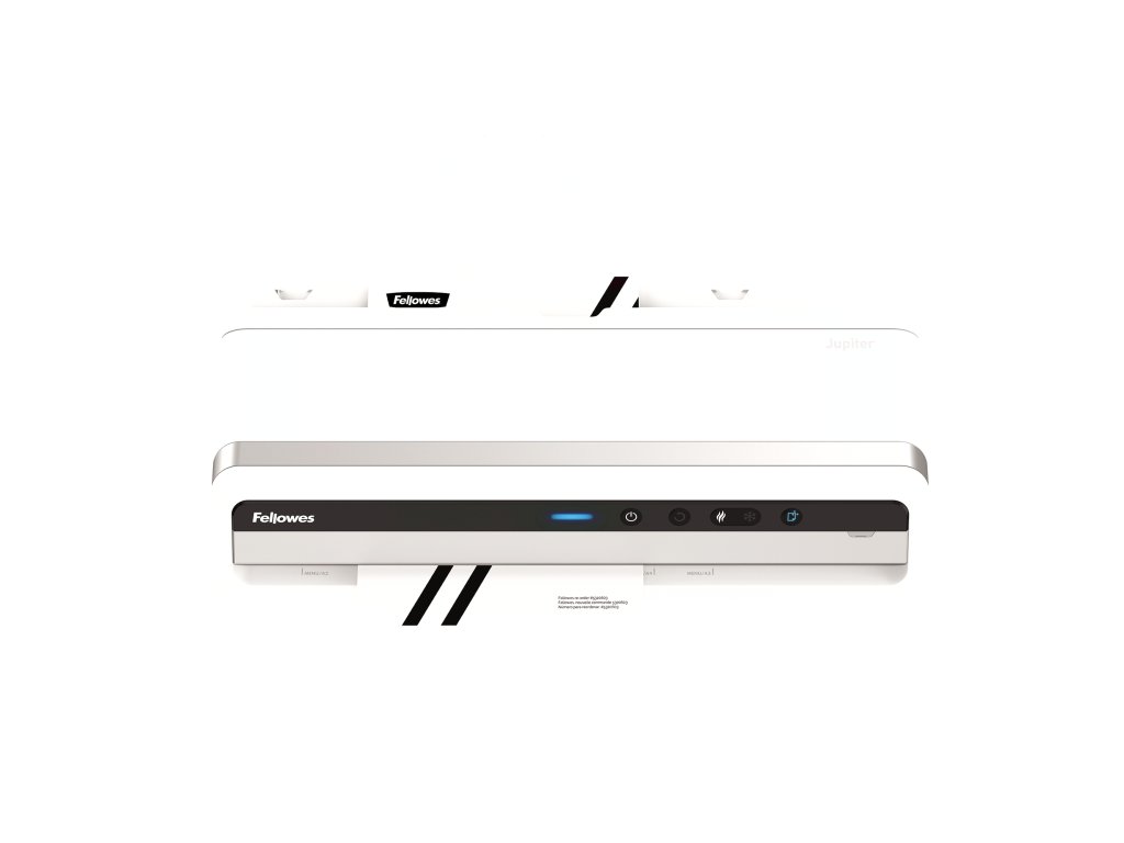 Inteligentní laminátor Fellowes Jupiter pro intenzivní kancelářské využií umožňující laminaci všech druhů hladkých papírů, včetně fotek od formátu vizitky po formát A3. Komfortní obsluha díky unikátní funkci AutoSense. JIŽ ŽÁDNÉ UŽIVATELSKÉ NASTAVOVÁNÍ PARAMETRŮ. Provozní HODNOTY stroje jsou NASTAVENY AUTOMATICKY po vložení laminovaného dokumentu do stroje.Umožňuje laminování dokumentů do formátu A3 laminovací fólií s tloušťkou 80 až 250 mic, maximální tloušťka dokumentu 0,8 mm. Díky 6-ti laminovacím válcům zajišťuje vysoce kvalitní výsledky laminace. Laminování za cca 1 min od zapnutí, rychlost laminace až 140 cm/ min - dokument formátu A4 zalaminuje za 17 sekund.