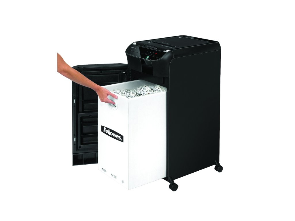 Ideální řešení automatické skartace papíru pro kanceláře s více (5+) uživateli. Světový lídr v technologii pro skartování Fellowes, Vás o tom přesvědčí.Automatický skartovací stroj Vám umožní věnovat se prospěšnějším kancelářským činnostem, nežli je vkládání papíru do běžného skartovače. AutoMax 600 M je schopen na jeden pracovní cyklus vyskartovat ze zásobníku až 600 listů 70g papíru v křížovém řezu 2x12 mm. Je navržen pro nepřetržitý provoz.