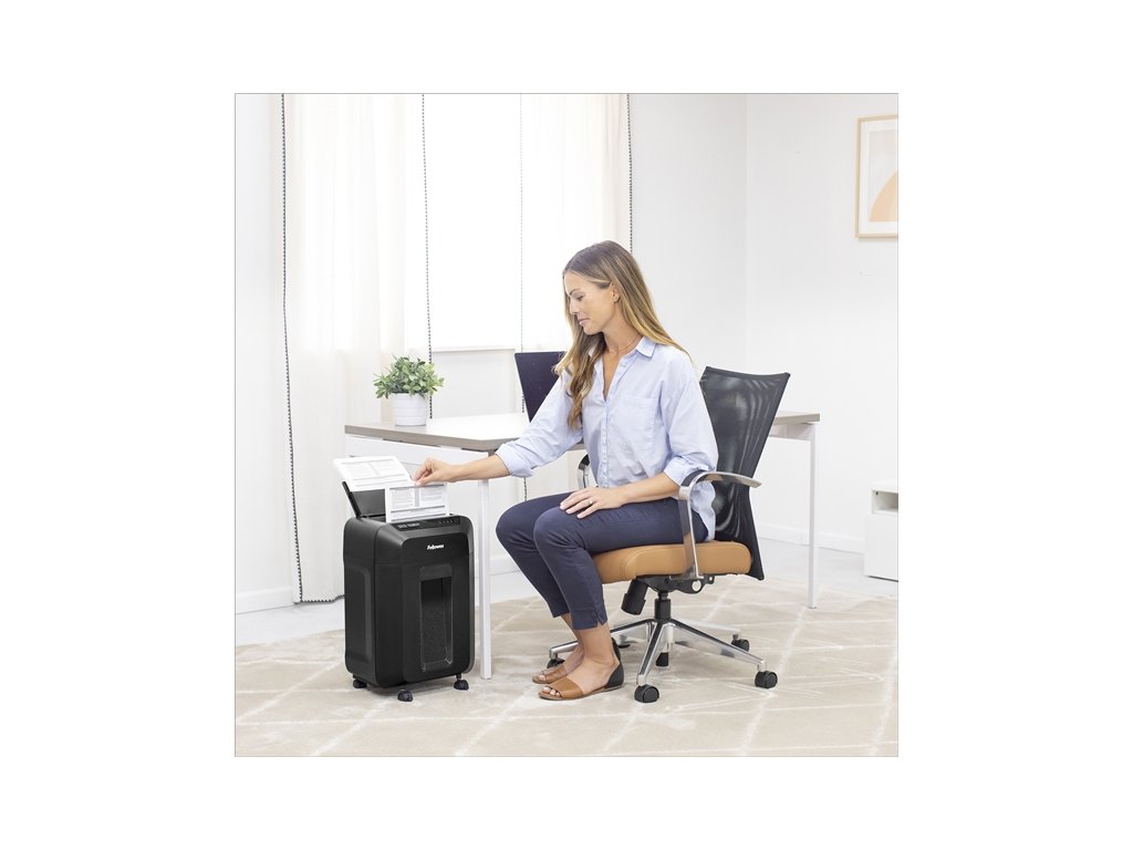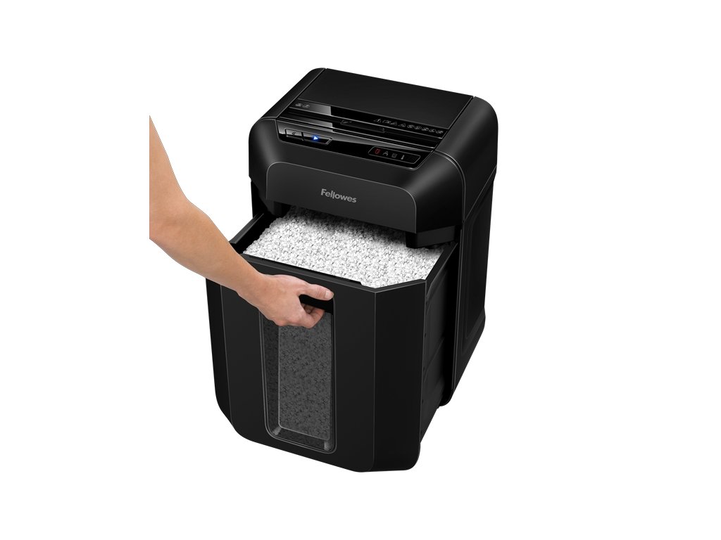 Vstupní model z řady automatických skartovačů značky Fellowes určený pro jednoho uživatele jako osobní skartovač v kanceláři. Jen nalož, zapni a běž. Automatický skartovací stroj Vám šetří čas strávený vkládáním skartovaných papírů.Zařízení je schopno na jeden pracovní cyklus při automatickém podávání skartovat až 90 listů 70g papíru v křížovém mikrořezu řezu 4×12 mm. Skartovač je také vybaven vstupní štěrbinou pro ruční podání až 9 listů papíru. Skartace z manuálního podavače je možná souběžně se skartací ze zásobníku automatického podávání. Objem odpadního koše 17 litrů. Snadná manipulace se strojem díky pojezdovým kolečkům.