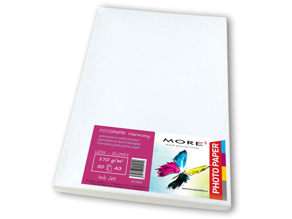 Fotopapír 170g, A3 lesklý, bílý, 50 listů.Kompatibilní s inkoustovými tiskárnami.