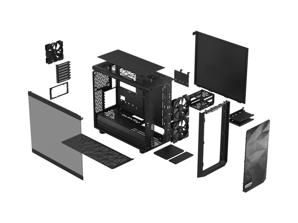 Meshify 2 Lite je vysoce výkonná skříň s odvážným estetickým vzhledem inspirovaným technologií stealth. Jeho nápadný exteriér je vybaven zapuštěným tvrzeným sklem bez šroubů, přední stranou s výklopným ikonickým síťovaným panelem a prostorným interiérem, který podporuje sestavy s více chladiči.*Ikonický hranatý design síťoviny nabízí proudění vzduchu s odvážnou estetikou inspirovanou technologií stealth