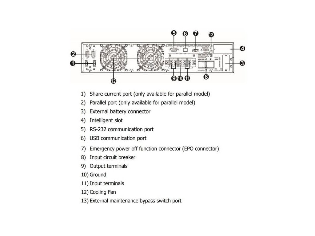 Jedná se o „Long run“ model, který neobsahuje baterie a je potřeba dokoupit příslušný počet battery bank.VÝSTUP