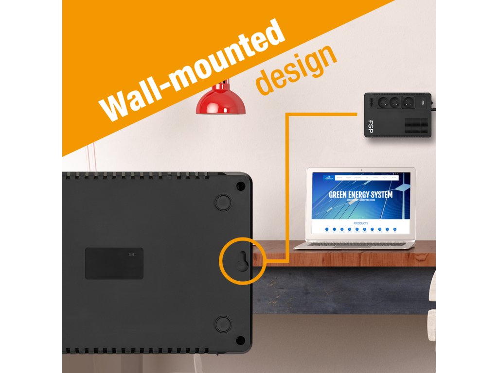 FSP/Fortron UPS ECO 800 FR, 800 VA / 480 W, USB, RJ45, line interactive.Vzhled UPS řady Eco je stabilní a introvertní, přičemž jeho funkce nelze podceňovat. Vzhledem ke své kompaktní velikosti může současně dodávat energii do počítačů, obrazovek, směrovačů a dalšího vybavení, které je považováno za topping na svém seznamu priorit pro domácí počítače nebo malé kancelářské počítačové pracovní stanice.