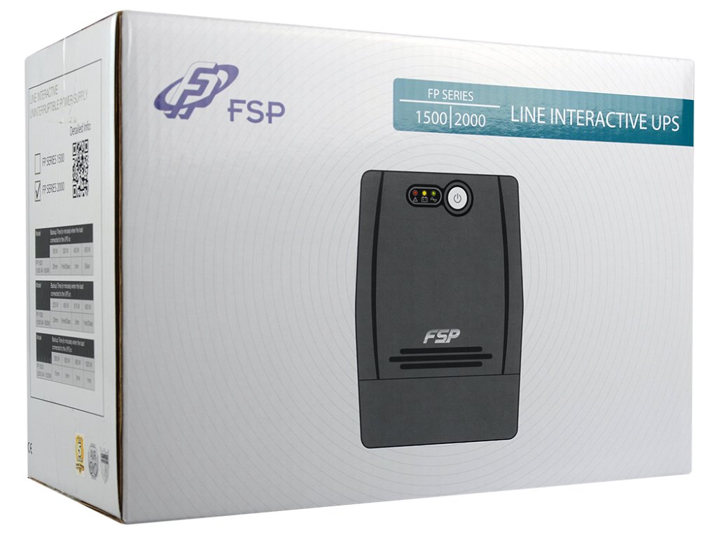 UPS zdroj slouží jako záložní baterie, která udrží počítače, servery a jinou IT techniku v chodu při výpadku elektrického proudu. Přednosti tohoto modelu jsou především jeho kompaktní rozměry, vysoká spolehlivost zaručená kvalitním mikroprocesorem, odolnost vůči automatickému vypnutí, nabíjení i v off-režimu a funkce studeného startu.FP série UPS FSP/Fortron nemá možnost komunikace s PC (není obsažen USB ani RS-232 komunikační port). V případě požadavku na komunikační port použijte UPS z řady EP série.
