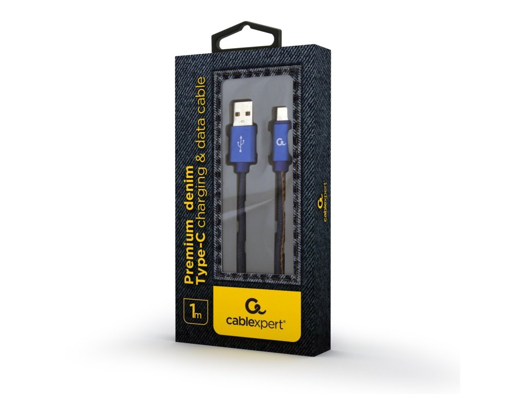 Gembird oplétaný denim USB-A/USB-C kabel 1m