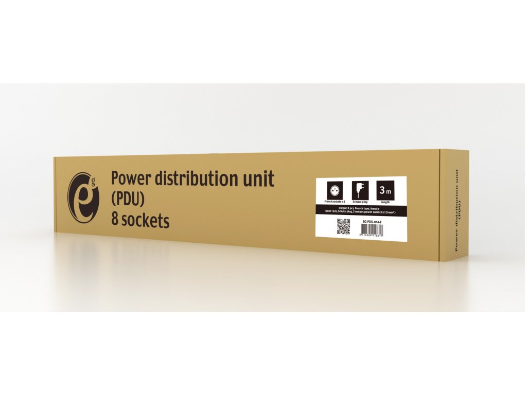 Gembird PDU 8 zásuvek, 1U, 16 A, 3m