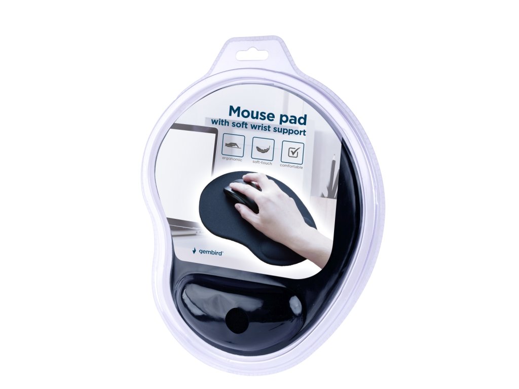 GEMBIRD Podložka pod myš s měkkou podporou zápěstí, černá*Ergonomický design s pohodlnou pěnovou opěrkou zápěstí