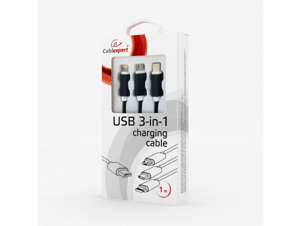 GEMBIRD USB 3-in-1 charging cable, black, 1 m