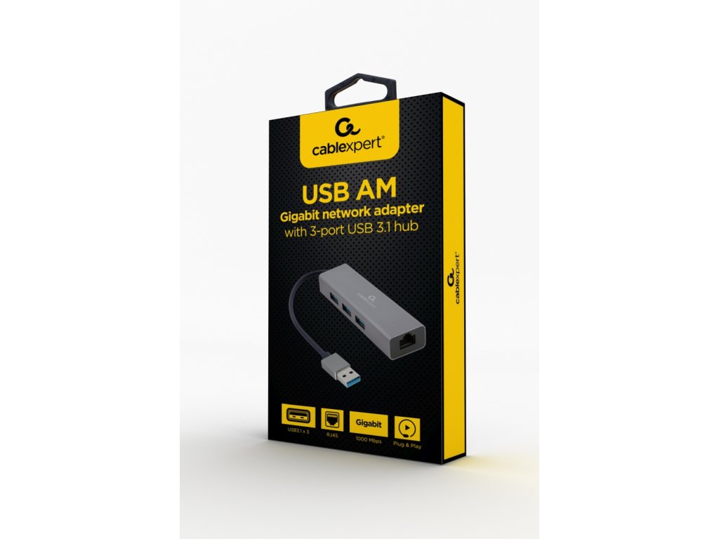 USB síťového adaptéru AM Gigabit s 3-USB portem