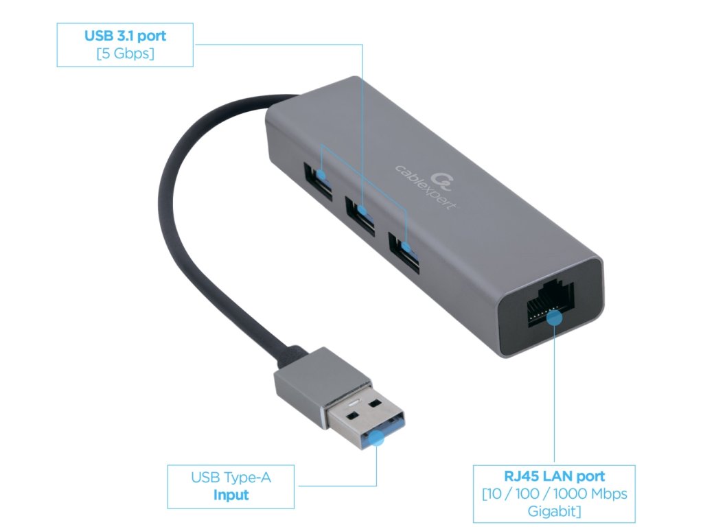 USB síťového adaptéru AM Gigabit s 3-portový USB 3.0 hub*Síťové připojení Plug-&-Play