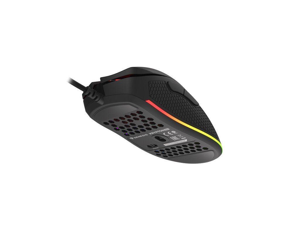 Genesis KRYPTON 555 je ultralehká programovatelná herní myš vybavená inovativním optickým senzorem Pixart PAW3333 a extrémně odolnými mechanickými spínači s životností až 60 milionů kliknutí. Ergonomický tvar chrání zápěstí před namáháním a osvětlení RGB umožňuje přizpůsobit si prostor.INOVATIVNÍ SENZOR