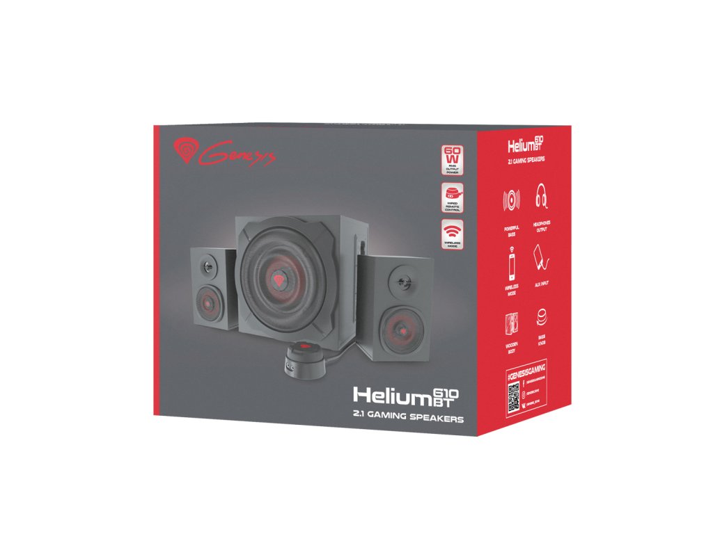 REALISTICKÝ ZVUKOVÝ ZÁŽITEKReproduktory Genesis Helium 610BT se řadí do aktivních reproduktorových sestav 2.1. Tento model zůstal přizpůsoben potřebám hráčů, ale určitě nezklame ani při sledování filmů, či poslechu hudby.