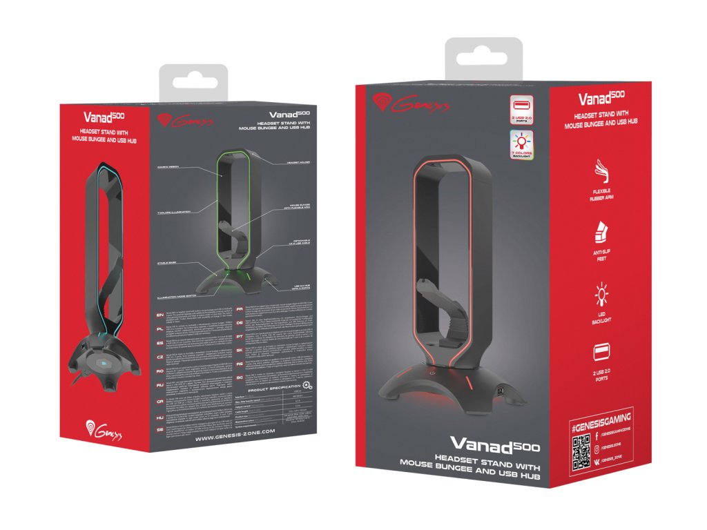 Seznamte se s Genesis VANAD 500Genesis VANAD 500 je herní příslušenství, na které jste čekali. Vysoce kvalitní, vytříbený mouse bungee stojan, který vám kromě základních funkcí nabízí mnoho dalšího, neboť jde o stylový stojan na sluchátka, USB HUB a držák kabelu myši v jednom.
