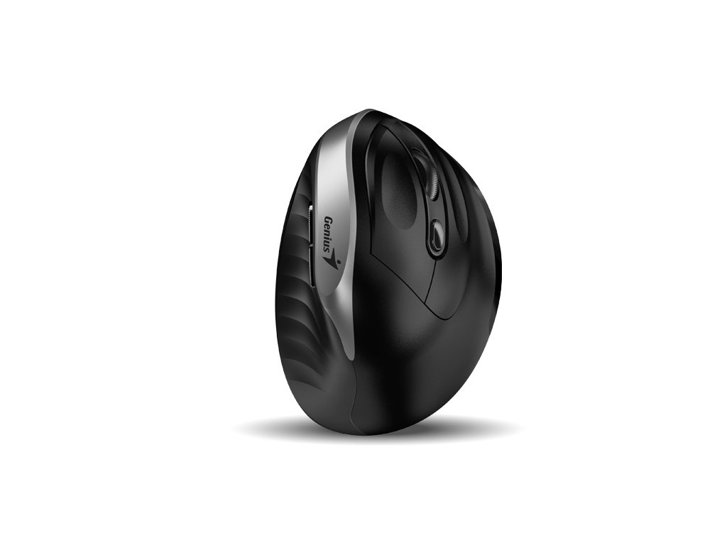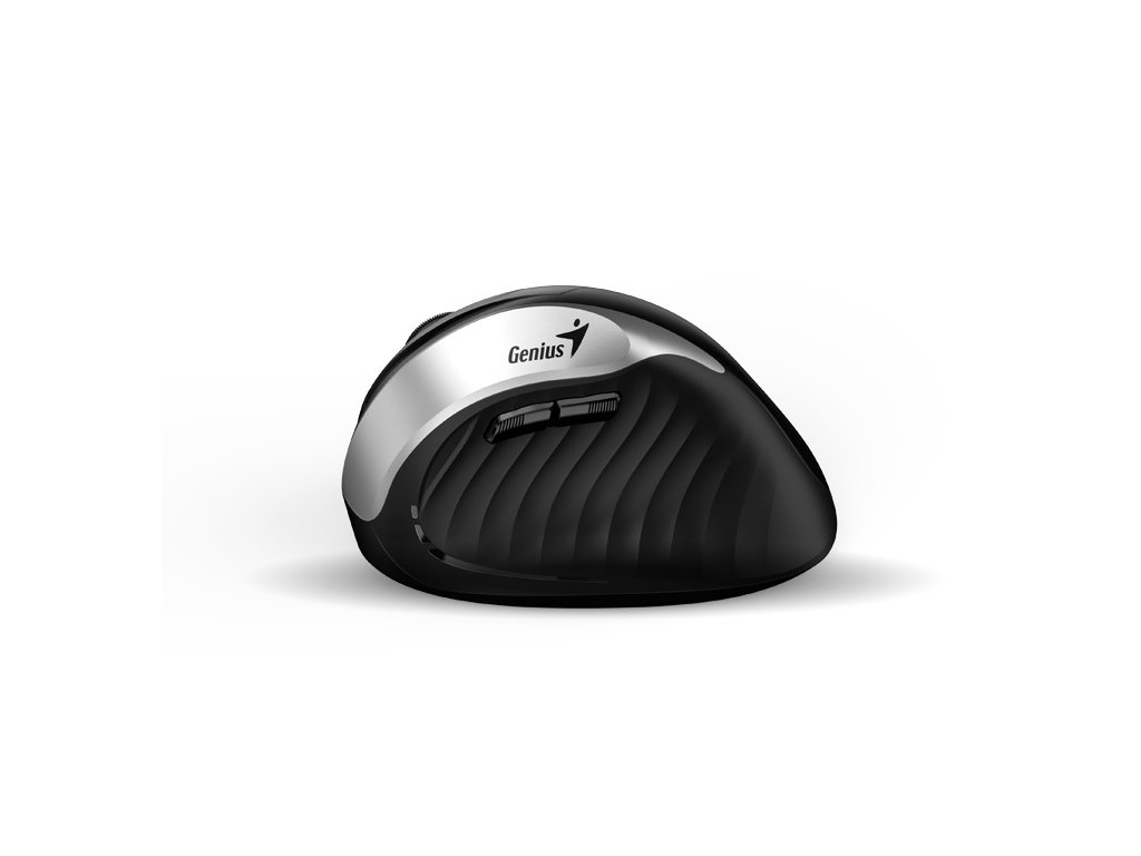 Genius Ergo 8250S/Vertikální/Optická/Pro praváky/1 600 DPI/Bezdrátová USB/Černá-stříbrná