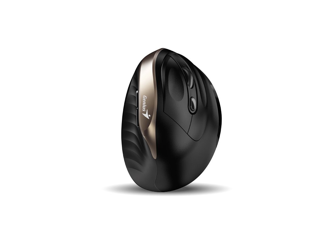 Genius Ergo 8250S/Vertikální/Optická/Pro praváky/1 600 DPI/Bezdrátová USB/Černá-zlatá