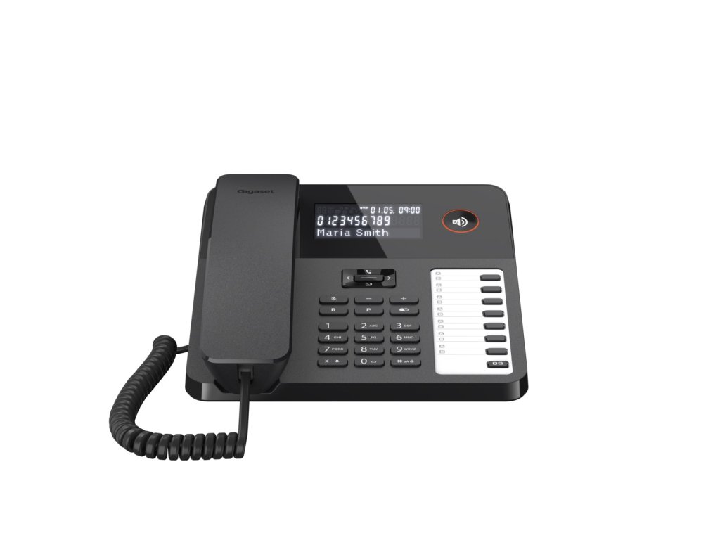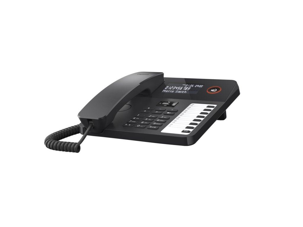 Šňůrový telefon Gigaset DESK 600 s LCD displejem a sedmi klávesami přímé volby, každou se dvěma