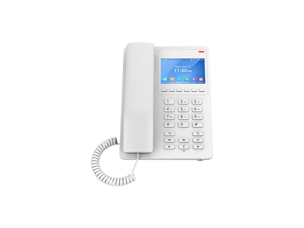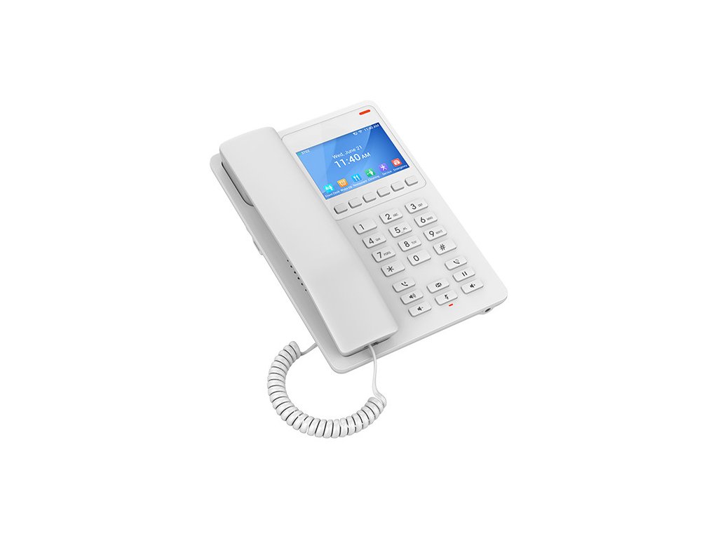 Řada hotelových telefonů GHP zahrnuje modely GHP630/GHP630W a GHP631/GHP631W, snadno použitelné IP telefony pro jakýkoli hotelový pokoj, které lze naprogramovat a upravit podle potřeb hotelů a jejich hostů.Tato řada obsahuje HD reproduktor, 2 SIP účty/linky, 6 kontextových softwarových tlačítek, 10 tlačítek rychlé volby, 3-cestné hlasové konference, podporuje celopásmový hlasový kodek OPUS a poskytuje pokročilý algoritmus odolnosti proti jitteru, který toleruje až 30% ztráta paketů bez dopadu na kvalitu hlasu.