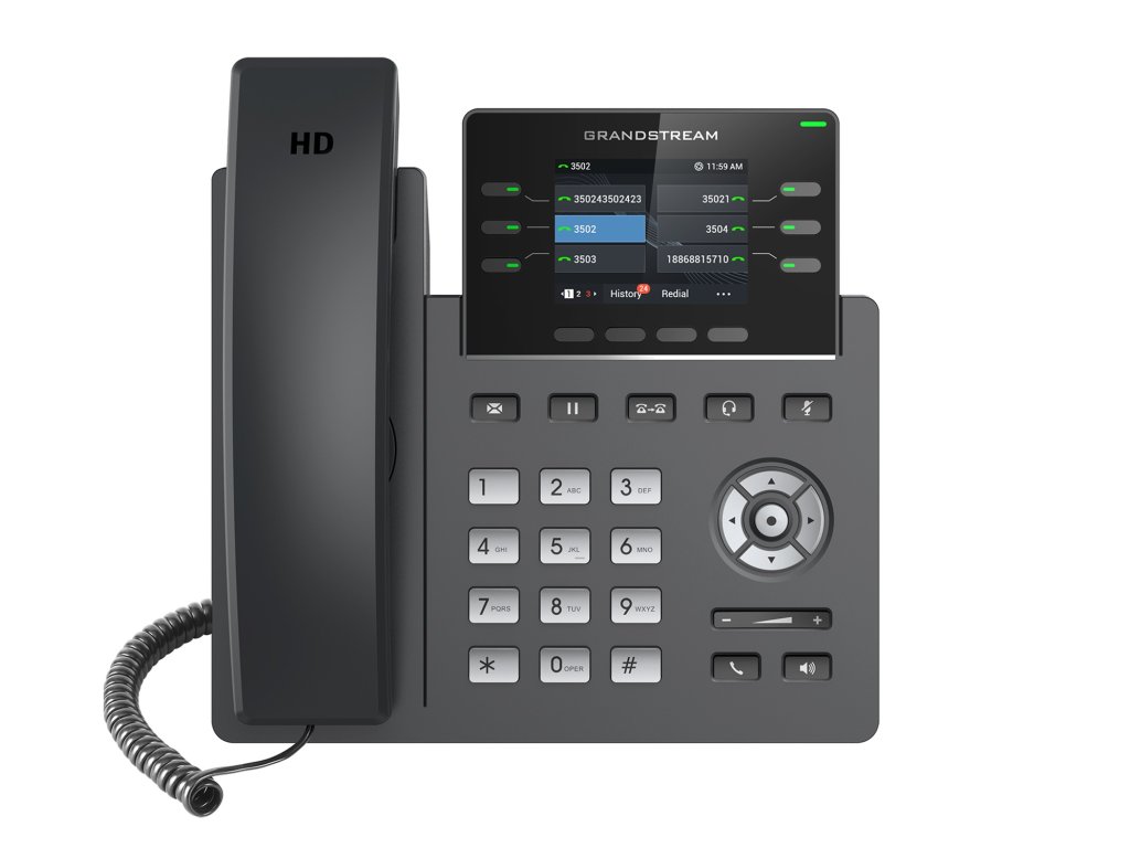 Tento výkonný IP telefon umožńuje 3 SIP účty a šest linkových tlačítek. Je navrhnut pro potřeby všech vytížených pracovníků. Výhodou telefonu je jeho snadné ovládání. Telefon disponuje moderním a elegantním designem a 24 virtuálními víceúčelovými klíči (VPK), duálními gigabitovými porty či barevným LCD displejem, který umožňuje výměnu čelní desky. Díky této funkci je možné si telefon upravit dle vlastních preferencí.Telefon je vybaven bezpečnostní funkcí určenou operátorům, která zajišťuje bezpečnost na podnikové úrovni a to včetně bezpečného spuštění, duální firmware a šifrované ukládání dat. Telefon je podporován systémem pro správu zařízení Grandstream (GDMS), který poskytuje centralizované rozhraní pro konfiguraci, poskytování, správu a monitorování nasazení koncových bodů Grandstream.