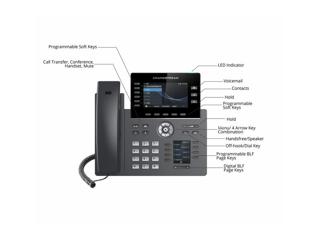 GRP2616 je IP telefon s 6 linkovými tlačítky z adaptabilní řady telefonů Grandstream, je navržený pro jednoduché hromadné nasazení a snadnou správu pomocí provisioningu. GRP2616 je vyroben pro potřeby zaneprázdněných desktopových pracovníků a pro snadné nasazení v podnicích, u poskytovatelů služeb a na dalších velkoobjemových trzíchGRP2616 je prvotřídní IP telefon , podporuje 6 linkových tlačítek a 6 SIP účtů a nabízí elegantní design a řadu funkcí příští generace, včetně integrované Wi-Fi, podpory Bluetooth, 48 víceúčelovými tlačítky (MPK), dvěma gigabitovými porty a dalších. Toto zařízení je vybaveno 4,3 palcovým barevným LCD displejem s vyměnitelnými čelní deskou a dalším 2,4 palcovým displejem s 8 dvoubarevnými BLF tlačítky.