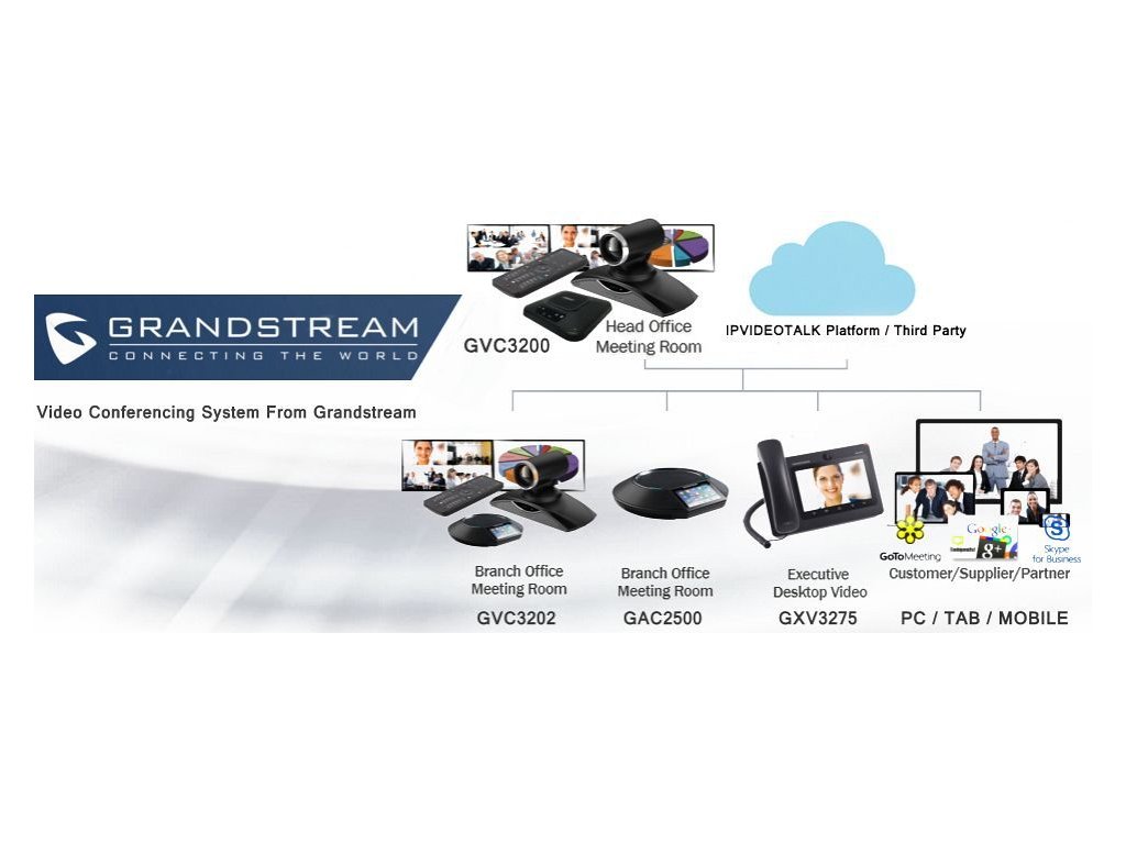 - Plug and Play pro připojení konference ke cloudovému videokonferenčnímu řešení Grandstream's IPVideoTalk