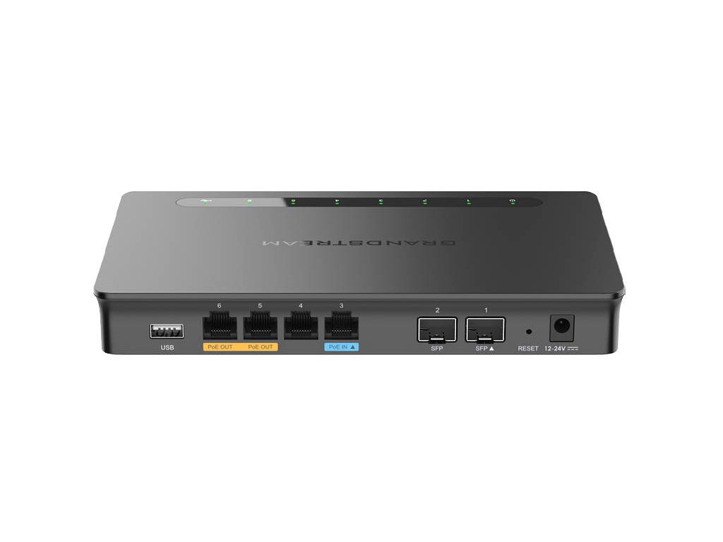GWN7002 je multi-WAN (všechny porty podporují WAN/LAN konfiguraci) gigabitový VPN router s vestavěnými firewally, které firmám umožňují budovat komplexní drátové, bezdrátové a VPN sítě pro jedno nebo více míst. Nabízí vysoce výkonný směrovací a přepínací výkon spolu s vestavěnou podporou VPN pro zabezpečenou konektivitu na pracovišti a mezi kancelářemi. GWN 7002 poskytuje enterprise-grade security ochranu a zajišťuje stabilní síťový provoz a má vestavěný firewall s pokročilým zabezpečením obsahu, filtrováním, detekcí hrozeb, prevencí útoků a dalšími funkcemi. Pro maximalizaci spolehlivosti sítě podporují funkce traffic load balancing, failover a bandwidth management capabilities.GWN7002 obsahuje 2 gigabitové SFP porty, 4 gigabitové ethernetové porty. 2 porty jsou PoE-OUT umožňují poskytovat napájení dalším koncovým zařízením.