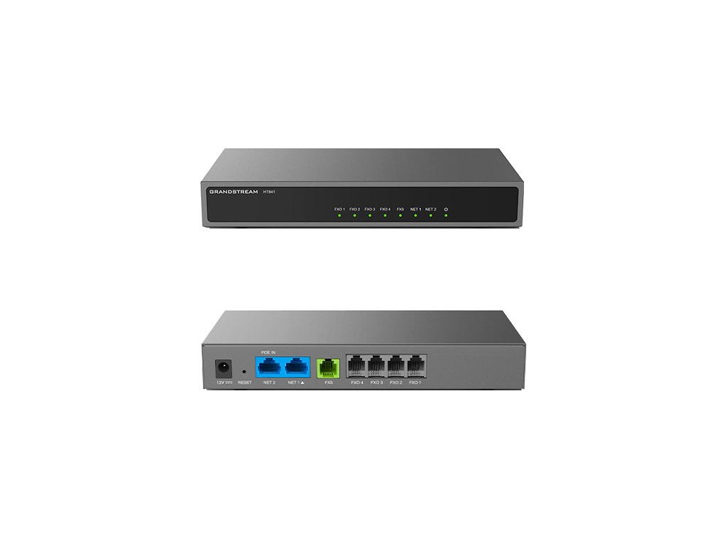 Gramdstream HT841 je FXO brána, umožňuje podnikům všech velikostí vytvářet snadno implementovatelné VoIP řešení. Tyto FXO brány nabízejí možnost bezproblémového připojení více míst a zařízení k jakékoli hostované nebo lokální IP PBX síti, aby nasazení bylo co nejjednodušší. Řada HT8x1 obsahuje porty FXO a FXS pro podporu volání do a z linky PSTN. Pokročilé telefonní funkce, snadný autoprovisioning a vynikající kvalitu hlasu umožňují, aby se řada HT8x1 stala ideální VoIP bránou pro firmy.Hlavní parametry:
