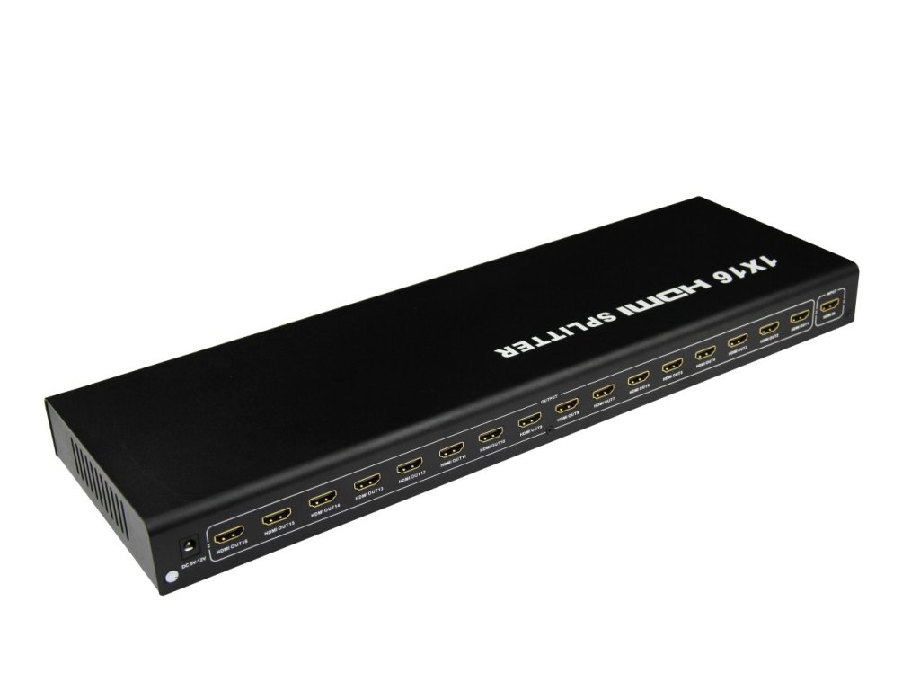 HDMI Video Splitter 1 => 16 s externím napájecím zdrojem, HDMI 1.4a kompatibilní max. rozlišení 1080i a 1080p.Můžete připojit několik HDMI obrazovek k jednomu HDMI zdroji signálu.