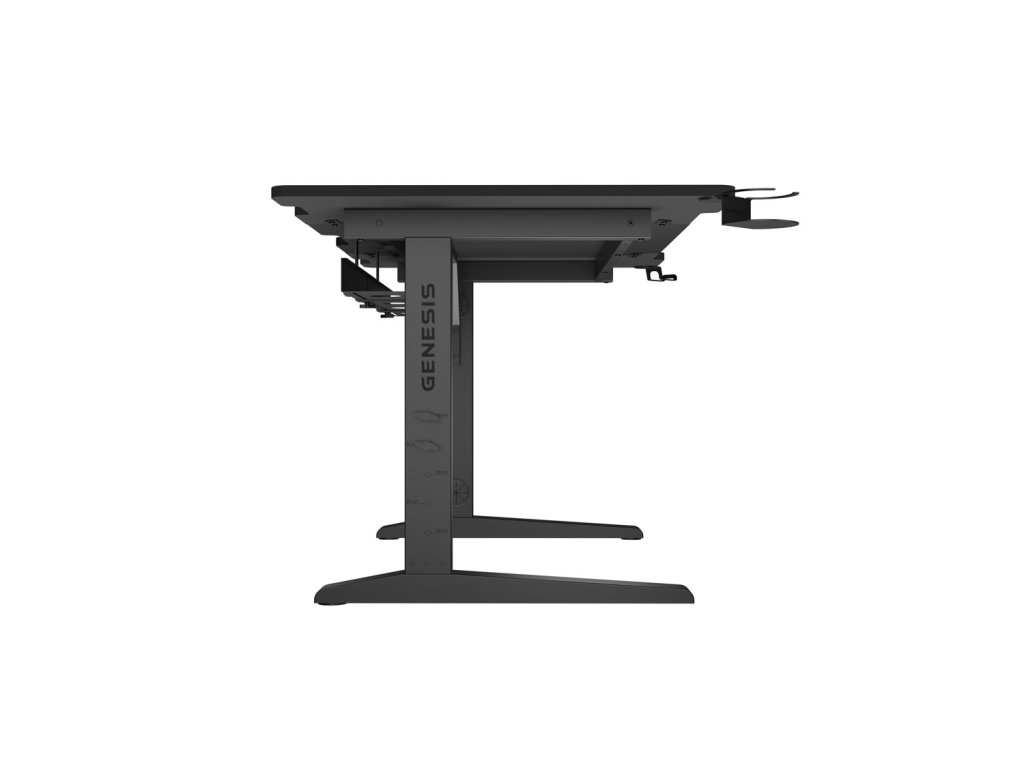 Nemusíte se obávat ani jeho výšky. Již ve fázi montáže si můžete vybrat z 5 úrovní, čímž určíte polohu stolové desky v rozmezí 70 až 90 cm. Můžete si ji tak snadno přizpůsobit své výšce, díky čemuž je stůl GENESIS Holm Modular plně ergonomický. Nastavitelná je také speciální police na kabely. Můžete ji prodloužit v rozmezí 50 až 95 cm, a přizpůsobit ji tak rozměrům celé stolové desky. Díky její hloubce se do ní snadno vejdou i velké přepěťové lišty.