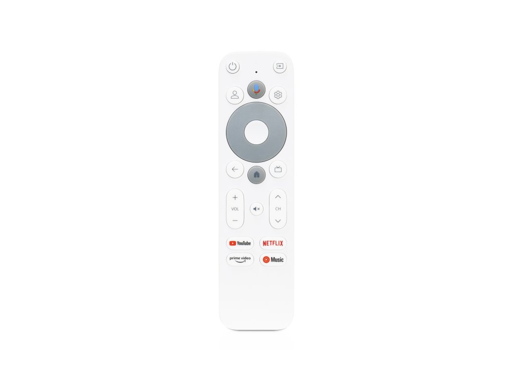 Obsahuje hlasového asistenta Google, předinstalovaný YouTube, Netflix, Google Play obchod, Prime Video, zabudovaný chromecast a podporuje nejpoužívanější aplikace jako například HBO MAX, Disney+, Antik TV, SWEET.TV, Magio TV, Skylink, Kodi a další. Bluetooth dálkové ovládání slouží také jako mikrofon pro hlasového asistenta Google.