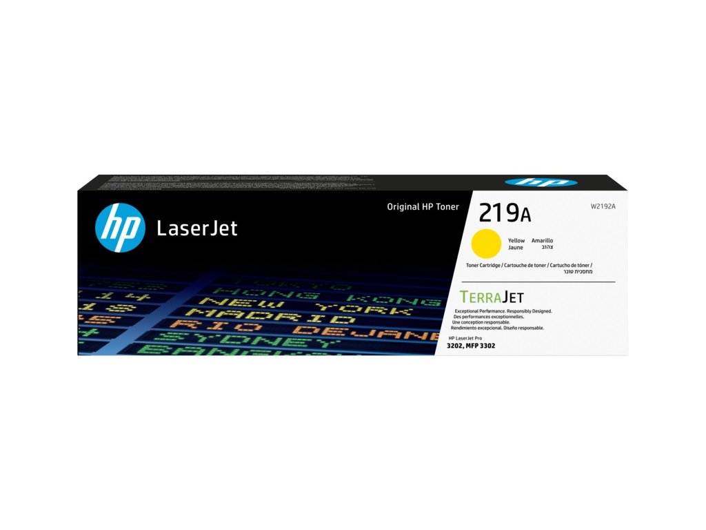 Žlutá originální tonerová kazeta HP 219A LaserJet (W2192A)Tonerové kazety HP TerraJet jsou navrženy pro efektivní využití toneru pro menší plýtvání a vynikající kvalitu tisku s integrovaným zabezpečením.