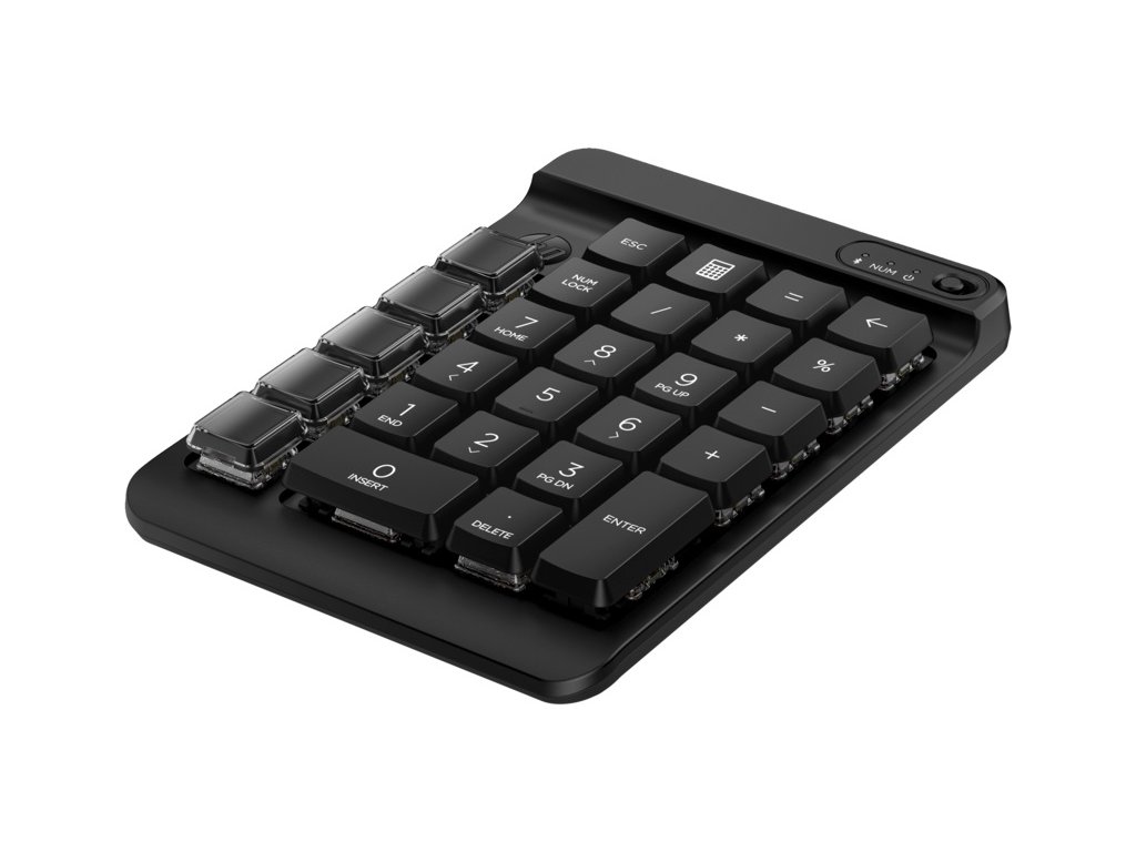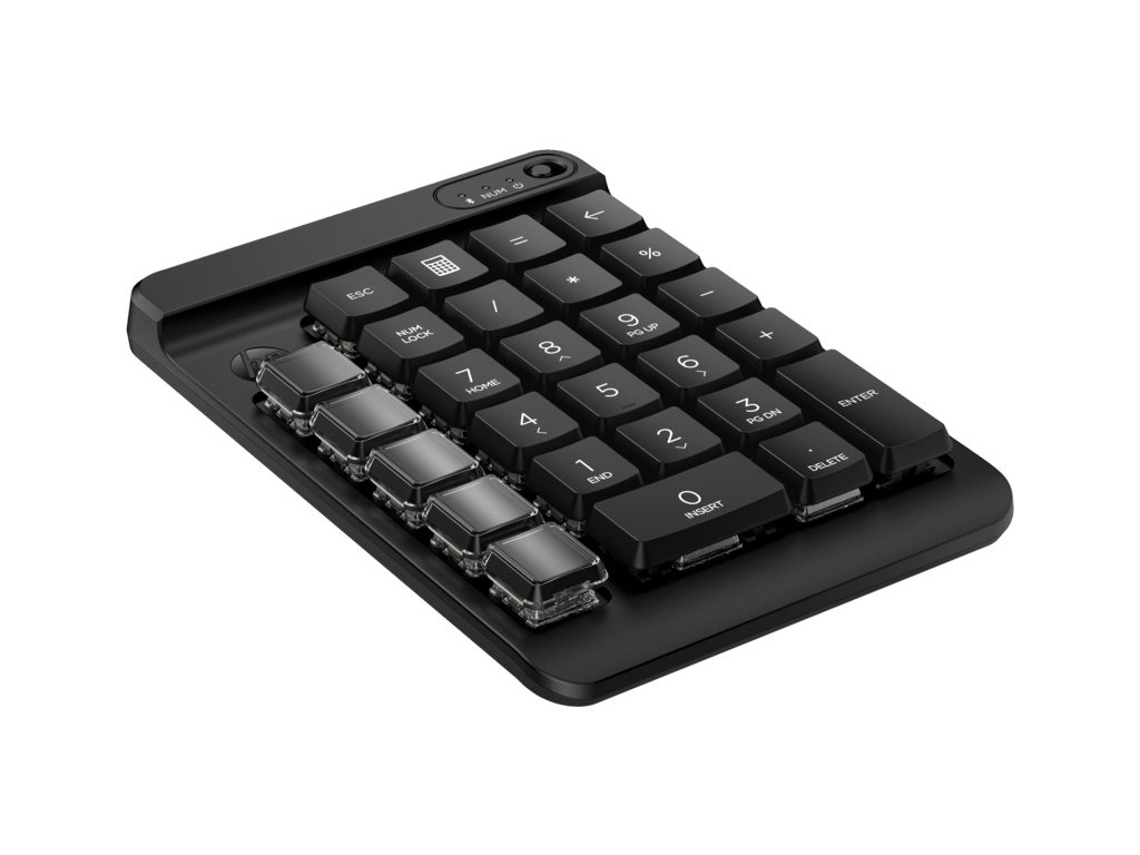 Programovatelná bezdrátová klávesnice HP 430 je mechanická a přizpůsobitelná s devíti programovatelnými klávesami s vyměnitelnými krytkami, které lze konfigurovat podle potřeby.