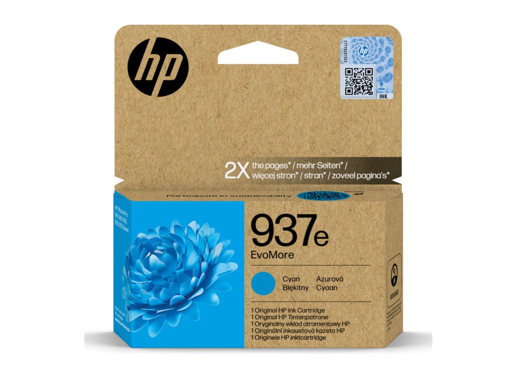 Inkoustová náplň HP 937e EvoMore azurováOriginální inkoustové kazety HP EvoMore spojují legendární kvalitu s udržitelnějšími vlastnostmi a umožňují vytisknout dvojnásobný počet stran, oproti klasický kazetám, takže mají nižší uhlíkovou stopu. Jejich recyklace je bezplatná a snadná a díky aktivitám komunity EvoMore se i vy můžete podílet na obnově lesů. Balení inkoustů je vyrobeno nejméně z 90% z recyklovaných vláken a navíc je 100% recyklovatelné. Samotné kazety jsou vyrobeny z už recyklovaného materiálu. Pokud použité kazety HP EvoMore zdarma vrátíte v rámci programu HP Planet Partners, společnost HP je recykluje a vyrobí z nich kazety nové.