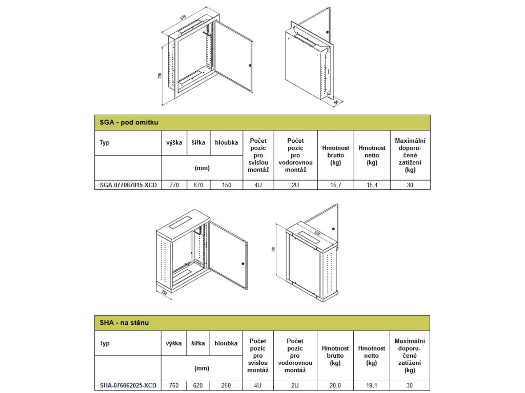 Hybridní rozvaděčové skříně pro realizaci domovních datových a silových rozvodů. IP20, nosnost 30 kg.