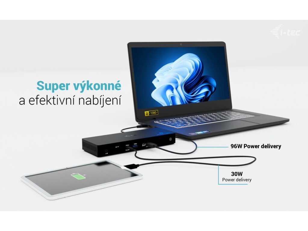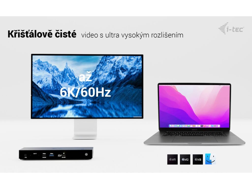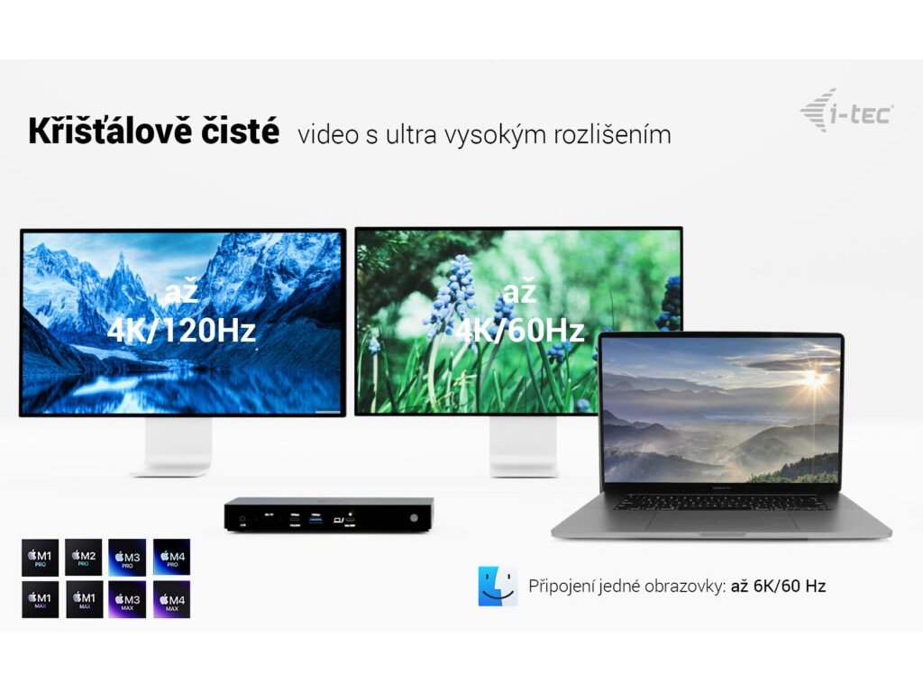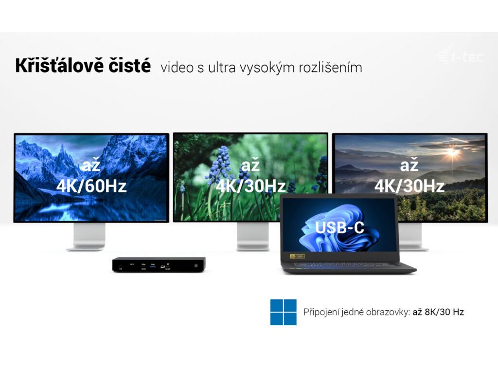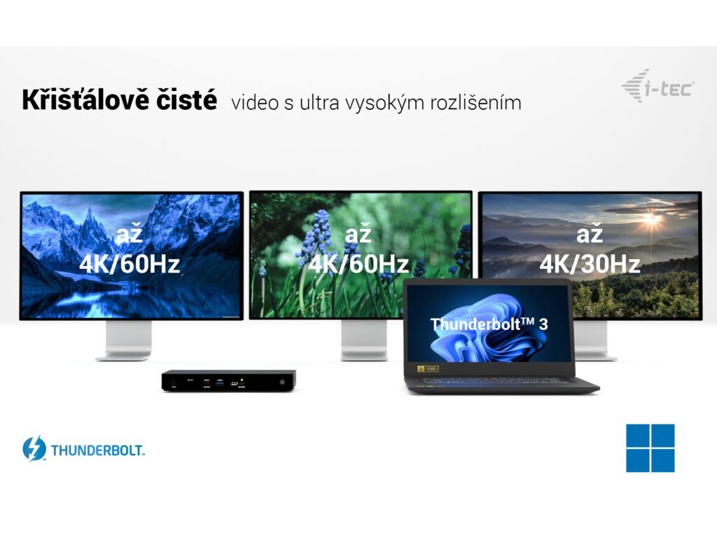 Ultra vysoký výkon, ultrarychlý přenos dat a podpora rozlišení až 8K/60 Hz. Jedna z nejvýkonnějších dokovacích stanic i-tec na trhu!Křišťálově čistý obraz, superrychlý internet a možnost přenášet data rychlostí až 4 GB za sekundu díky integrovanému výstupnímu portu Thunderbolt 4. Můžete také samozřejmě připojit sluchátka nebo audio a nabíjet notebook (96 W), a to vše pomocí jediného kabelu (100 cm certifikovaný Thunderbolt 4 kabel je součástí balení).