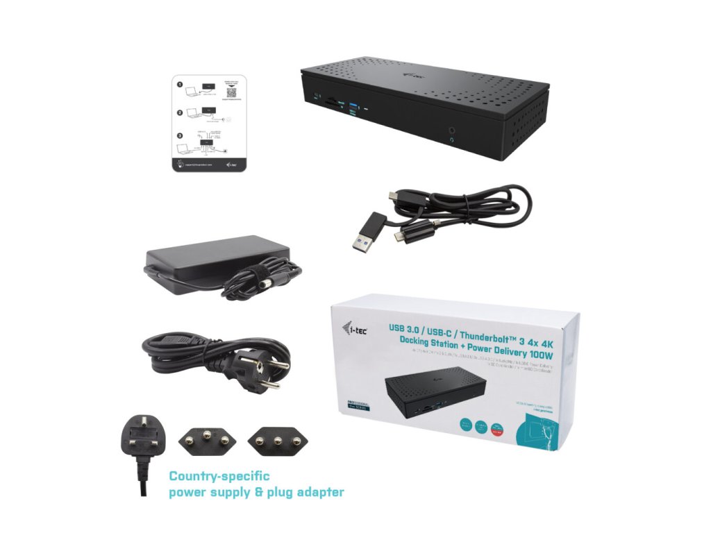 i-tec Universal USB 3.0/USB-C/Thunderbolt, Quattro 4K Display Docking Station, Power Delivery 100W
