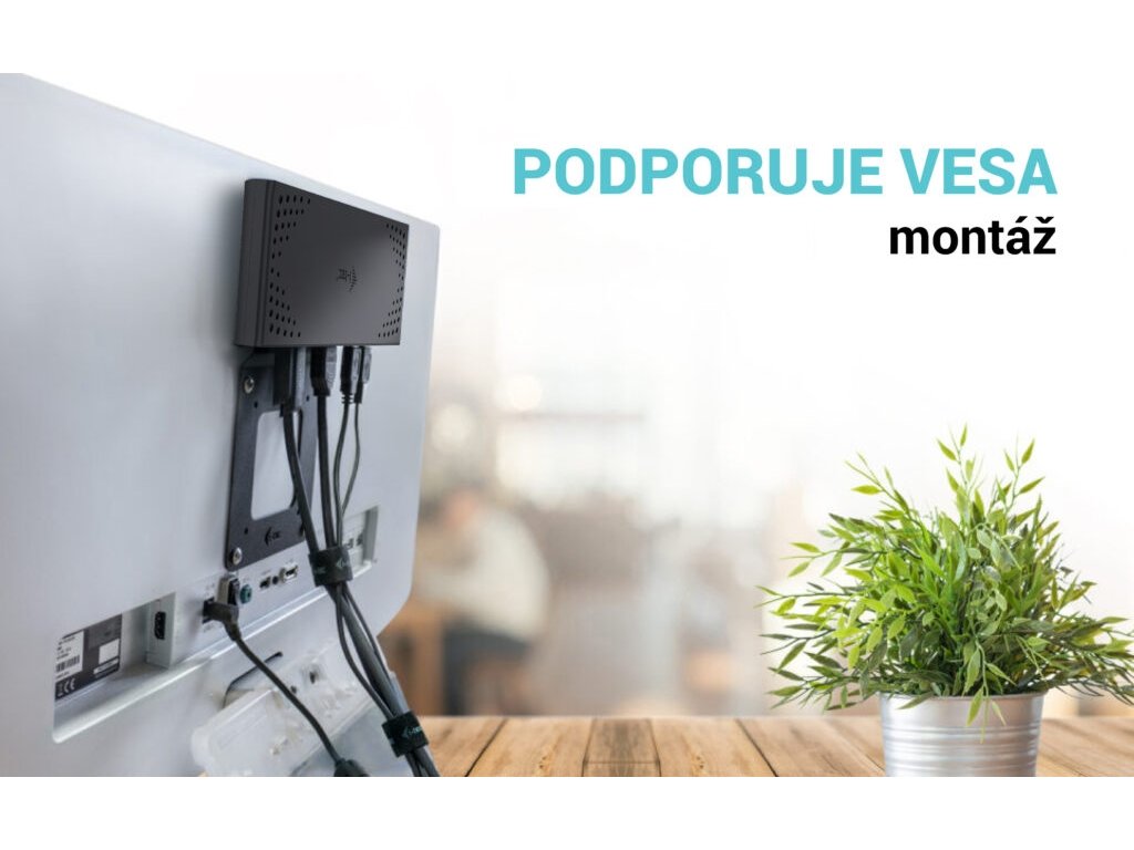 • Dokovací stanice podporuje držák VESA pro inteligentní vertikální instalaci za monitor s podporou VESA