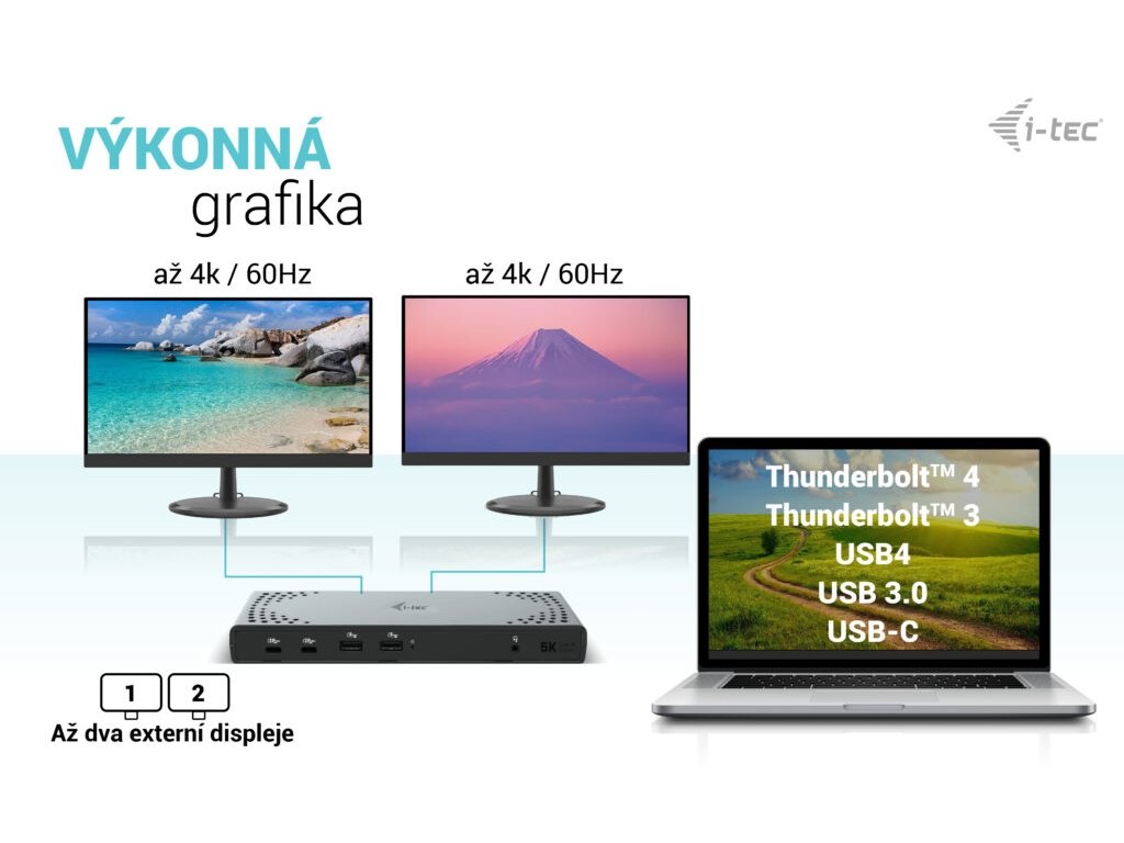 • Připojení 2 externích monitorů v rozlišení až 4K