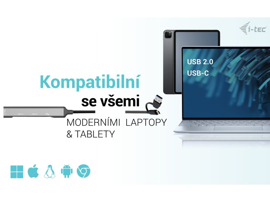 • HUB podporuje všechny běžné současné operační systémy (Windows, macOS, Linux, Android, Chrome OS, iPadOS).