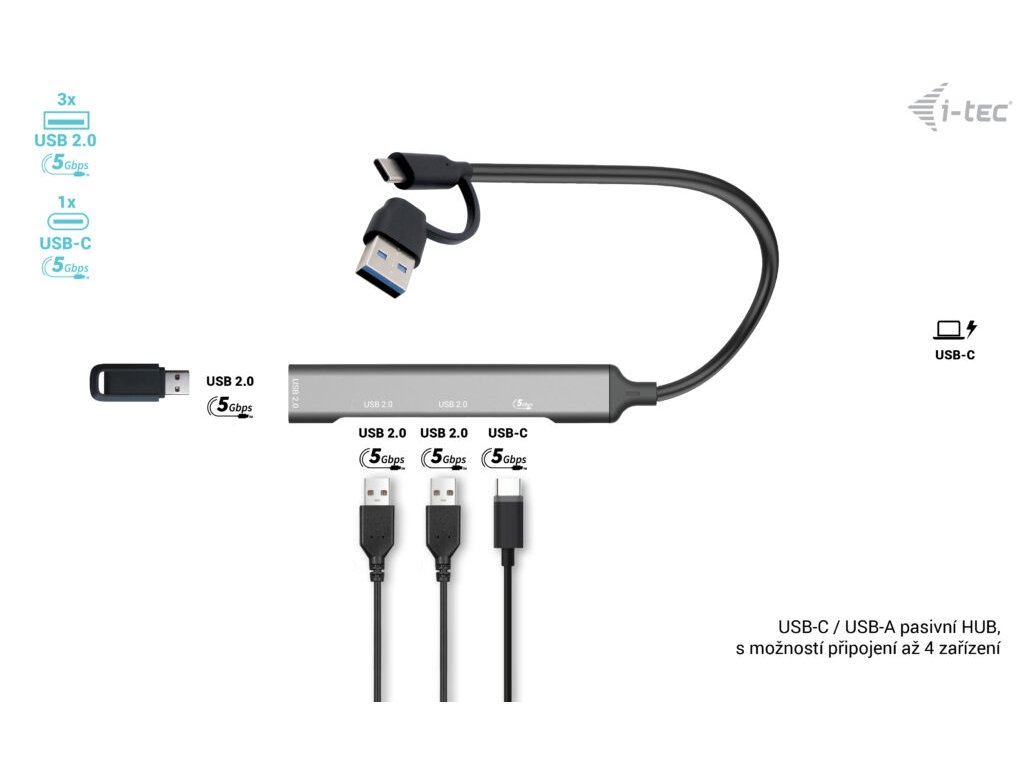 i-tec USB-A/USB-C Metal HUB 1x USB-C 3.1 + 3x USB 2.0