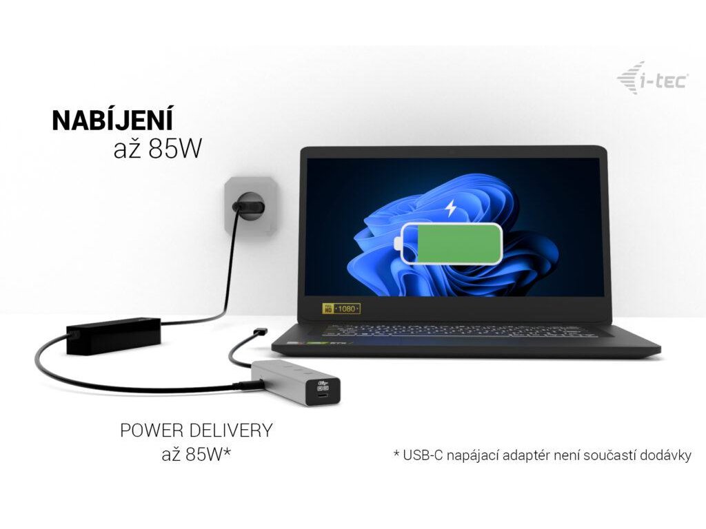 i-tec USB-C Charging Metal HUB 5port with USB-C video 8K, Power Delivery 85W