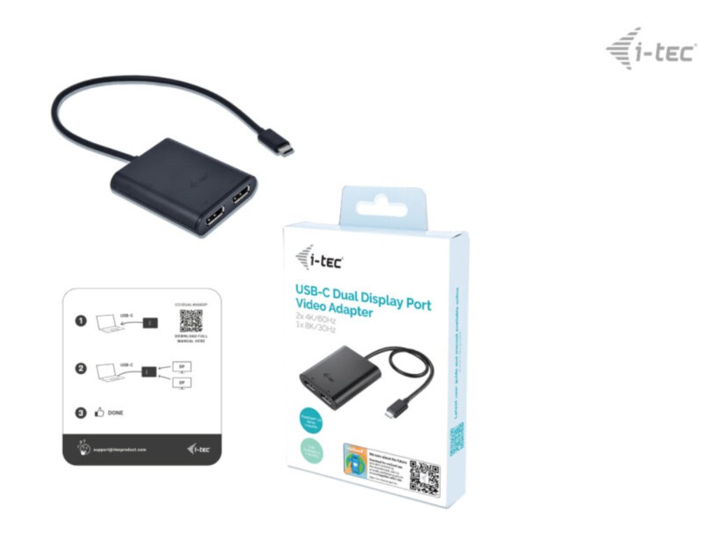 i-tec USB-C Dual 4K/60Hz (single 8K/30Hz) DP Video Adapter