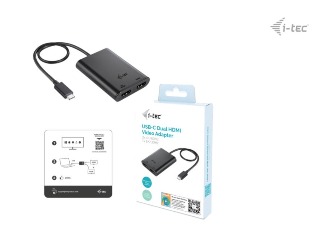 i-tec USB-C Dual 4K/60Hz (single 8K/30Hz) HDMI Video Adapter