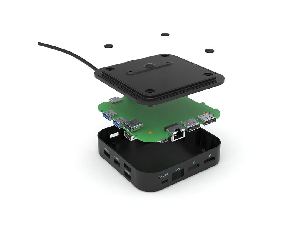 Kancelářská dokovací stanice USB-C, která podporuje až 2x externí monitor v rozlišení 4K. Stanice je kompatibilní s jakýmkoliv notebookem vybaveným portem USB-C nebo Thunderbolt 3. 6x USB port, spolehlivé a rychlé připojení do podnikové sítě díky integrovanému LAN portu a podpora instalace za monitor, to vše z této dokovací stanice dělá ideálního společníka pro profesionály. Samozřejmostí je podpora nabíjení vašeho notebooku či tabletu, a to až 100 W.Integrovaný nejnovější protokol DP 1.4 podporuje rovněž rozlišení 5K/60 Hz, což mohou ocenit i profesionální grafici, datoví analytici, filmoví editoři, případně milovníci videa ve vysokém rozlišení.