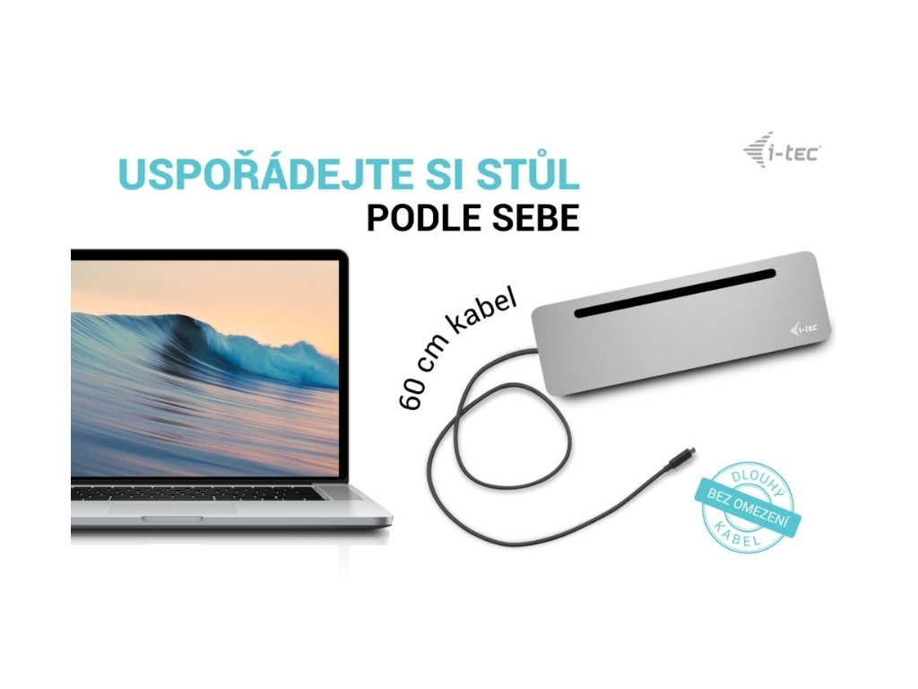 • Ergonomický design s hliníkovým krytem, dokovací stanice má integrovaný 60 cm kabel USB-C, takže je vhodná pro použití se všemi notebooky & tablety s displeji do 15" včetně.