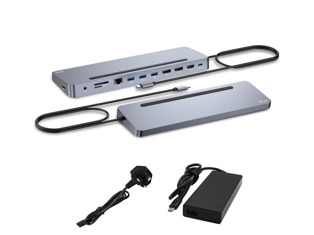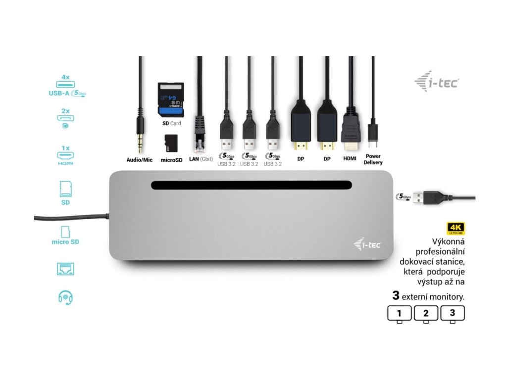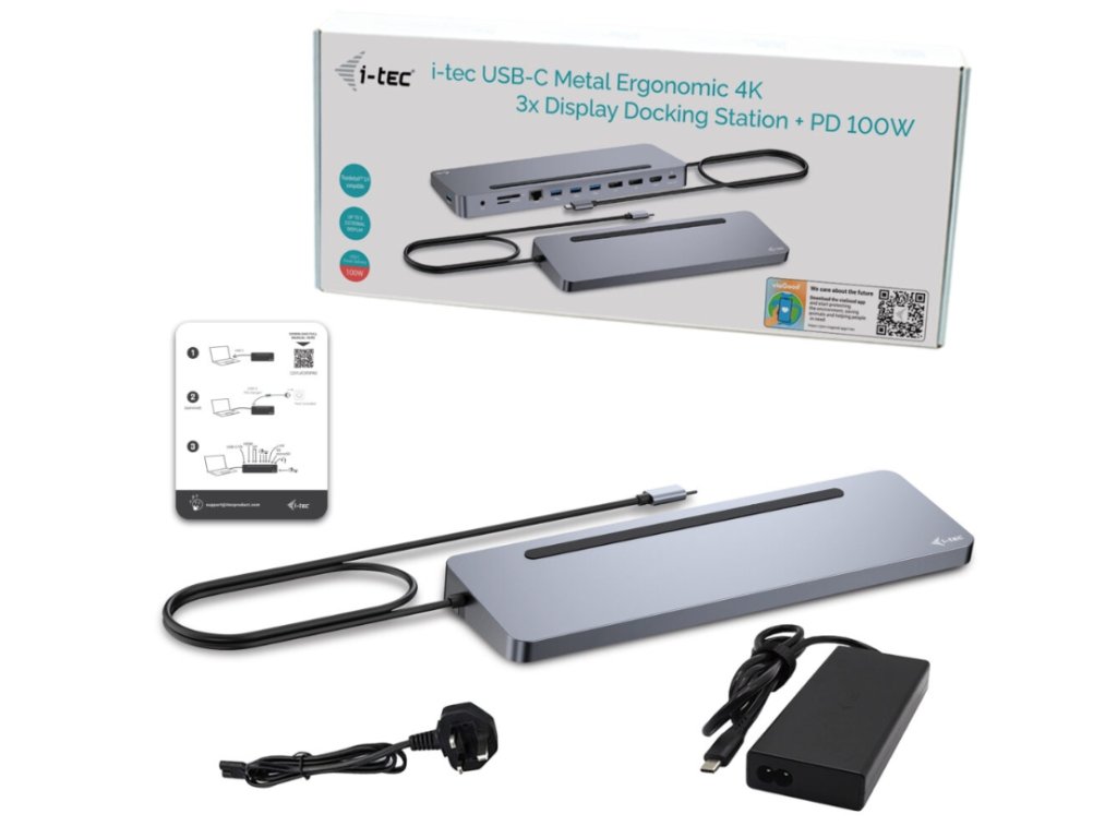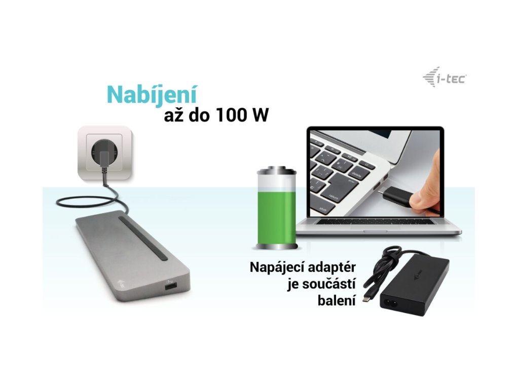 i-tec USB-C Metal Ergonomic 3x 4K Display Docking Station, PD100W + i-tec Universal Charger 100W