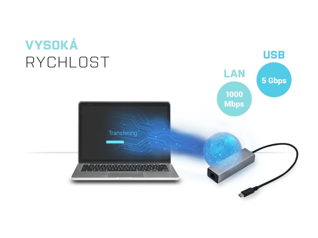 Wi-fi připojení do sítě je opravdu pohodlné, ale ruku na srdce, pokud chcete opravdu výkon bez kompromisů, tak není nad kabelové připojení přes Gigabit Ethernet port. Ten však moderním zařízením často chybí. Tento adaptér rozšíří váš notebook, tablet nebo PC s novým USB-C nebo Thunderbolt 3 konektorem o Gigabit Ethernet port pro snadný přístup do 10/100/1000 Mbps sítě. S klidem si tak můžete vychutnat vysokorychlostní internetové připojení bez jakéhokoli přerušení.Adaptér nevyžaduje externí napájení a podporuje širokou škálu operačních systémů od Windows a Mac OS až po Linux. Ethernet síťové připojení je možno používat také v systému Android. Podpora této funkce ale musí být zahrnuta výrobcem přímo v daném Android zařízení. Podporu si snadno ověříte v nastavení síťových připojení › další sítě, zde musí být položka Ethernet.