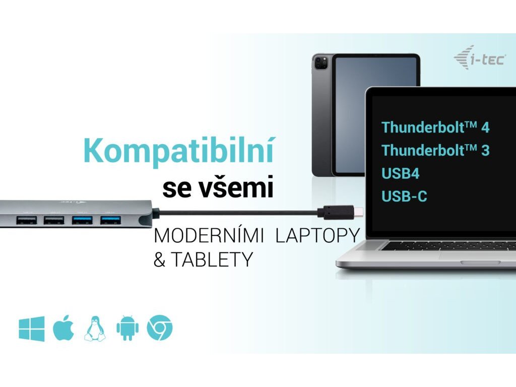 Dokovací stanice je také plně kompatibilní s tablety a notebooky vybavenými portem Thunderbolt 3/4.
