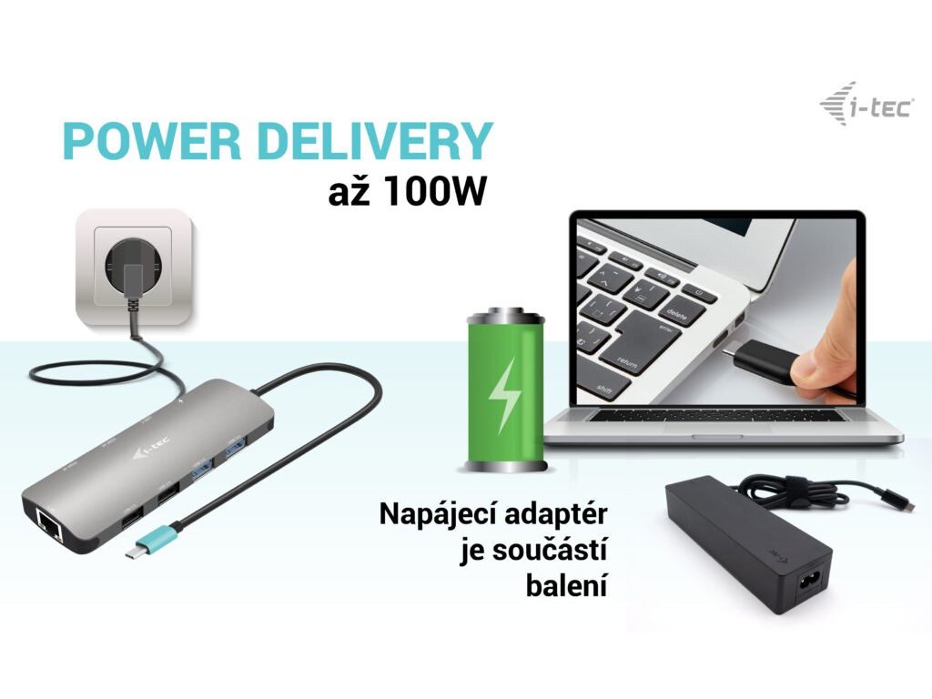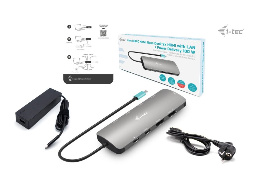 i-tec USB-C Metal Nano 2x HDMI Docking Station, PD 100W + Charger 100W (bundle)