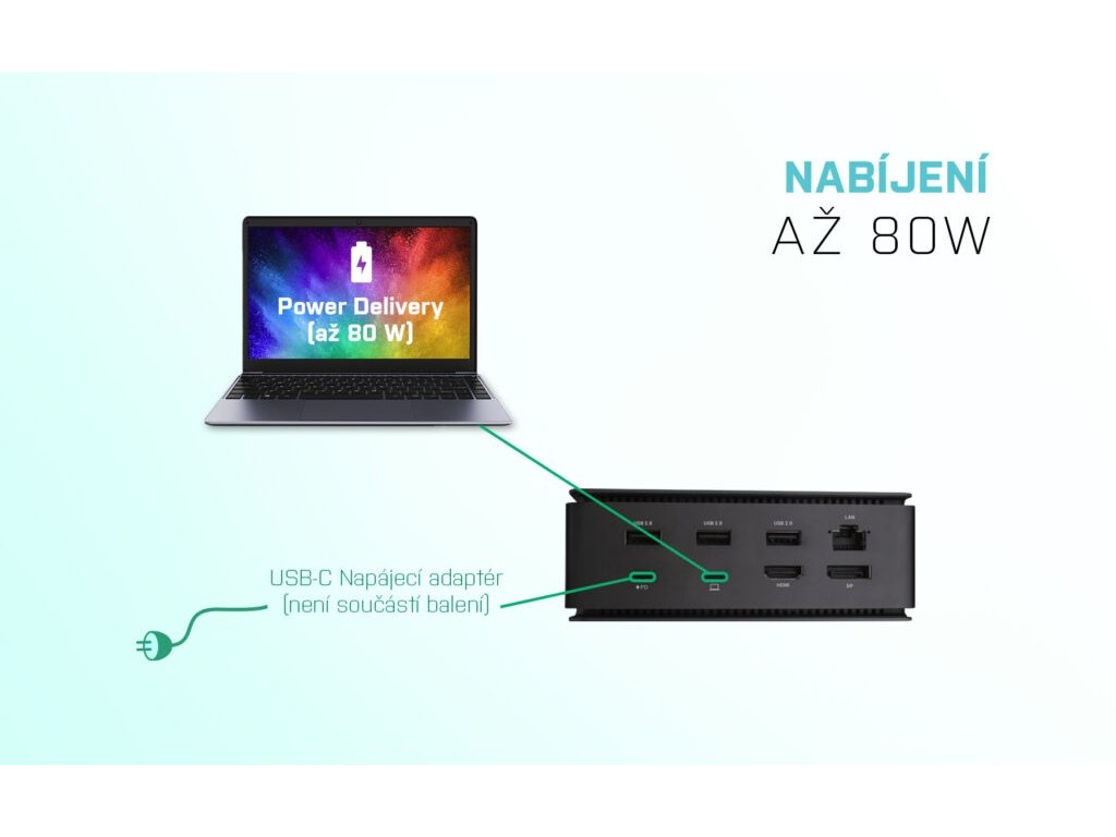 • Power Delivery: 80 W (napájecí adaptér není součástí balení)